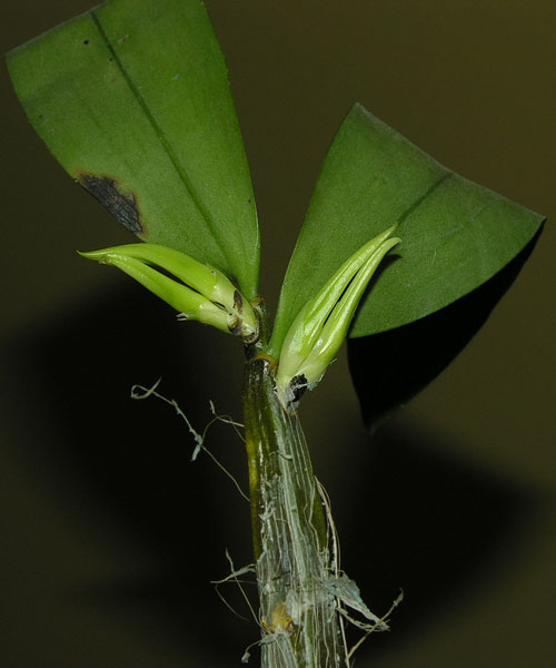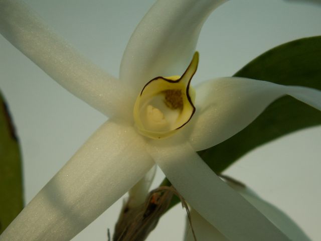 Tydzień temu zauważyłam 1-cm "migdałek" przy nasadzie liścia. Rósł w tempie 1-1,5 cm dziennie, wczoraj wieczorem 8-cm pąk zaczął u dołu pękać, a dziś rano widok był już taki:
