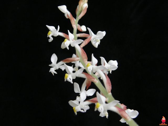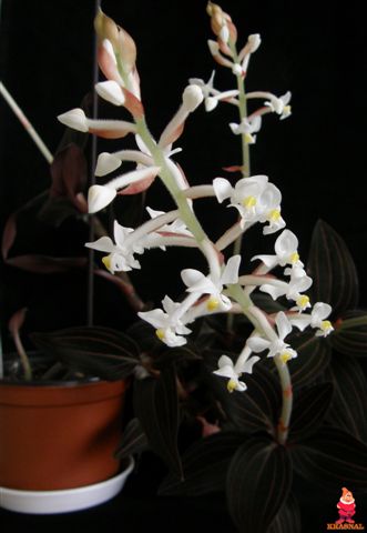 Dendrochilum glumaceum - jeszcze 2 pędy czekają na otwarcie. Zapach jest zniewalający.