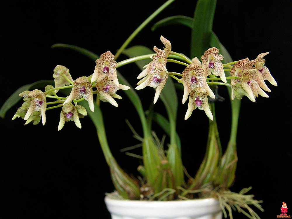 Kolejne kwitnienie Bulbophyllum guttulatum w tym roku. Tym razem 3 pędami; 15;14 i 13 kwiatów