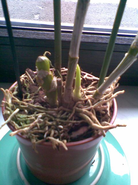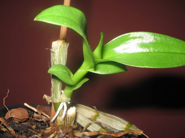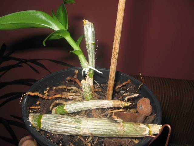 Panie Romanie.Kupiłem identyczne Dendrobium w styczniu 2003.Duże,obficie kwitnące.Po miesiącu zostały same ,gołe "patyki".Gdzieś w listopadzie pojawiło się "keiki" które odsadziłem / miało ok.10 cm./,ale nie utrzymało się.Chyba trochę się pospieszyłem.W 2004 ze starej rośliny wybijały jeszcze dwa razy pędy ale dość szybko zamierały.Podejrzewam teraz, że roślina była trzymana w zbyt chłodnym pokoju.Trzymam jeszcze starą łodygę w nimi szklarence parapetowej,ale na wiosnę chyba wyrzucę bo wygląda jak mumia.Skusiłem się drugi raz na ten sam okaz w stycznu 2005 / chyba to ich pora importu,no i dzień był dość ciepły / i też zaczął zrzucać liście ale cztery górne,na jednej z trzech dużych bulw, utrzymały się.W kwietniu wybił pęd kwiatowy /z tego ulistnionego / i trzynście kwiatów cieszyło oko do końca czerwca.Koniec lipca to wybicie nowej pseudobulwy.Wyrosła ładna, gruba,gęsto ulistniona. Moje wnioski : w/w dendrobium jest bardzo wrażliwe na przechłodzenie tzw."transportowe".W domu trzymać w warunkach jak dla phalaenopsisa.Jeśli zostawi sobie choć dwa liście to powinien mieć Pan z niego pociechę.Powodzenia Andrzej. |
