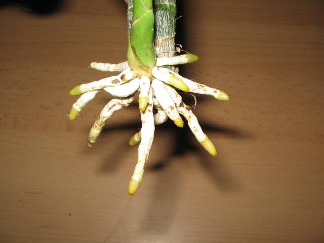 Panie Piotrze tylko jedna z roślin według mnie wymagała reanimacji ( Ph po zalaniu ten z brązowymi korzeniami), reszta zdjęć jest po to by zobrazować jak wyglądają zdrowe, chore lub korzenie po podlaniu bo z tym borykają się nowe osoby. Ostatni prezentowany Phalaenopsis nie wymaga jeszcze reanimacji, ( w tym przypadku wystarczy zmienić wodę nie trzeba przesadzać, przesadzanie jest konieczne jeżeli ten proces byłby w stanie zaawansowanym).Bład jaki popełniłam to to że nie napisałam że w zaawansowanym stadium storczyk wymagałby przesadzenia. Ten Phalaenopsis ma jeszcze zdrowe korzenie w podłożu, a jego stan nie wymaga nadzwyczajnych zabiegów.Ten temat nie jest poświęcony reanimacji, tylko zobrazowaniu jak wyglądają korzenie w róznych stadiach (zdrowe, chore, po podlaniu). Storczyki tu przedstawione nie są reanimowane, bo po co one tego nie wymagają. Myślę że troszkę inaczej zinterpretował Pan ten temat.