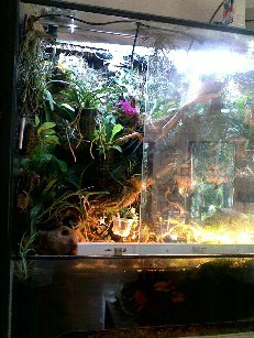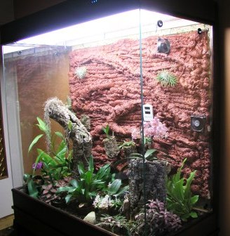 dorzucam coś mojego koszt pierwotnie 1500zł (gablota 1,2x1x0,6m -460zł, oświetlenie 320zł,pompka 35zł-wysokociśnieniowa w serwisie agd, wężyk Castorama-Gardena 4mm, złączki zraszacze itp ok 100zł, wraz z korkiem mchem rurami korkowymi ok 300zł, druty, żyłki uchwyty-50zł, siatka dla ptaków 60zł, dodatkowo filtr do akwarium 140zł, no a potem ... już tylko więcej roślinki to jednak spory wydatek, za to często trafiam na fajne rozwiązania np. drewniane kostki w netto po obniżonej cenie 3zł szt. fajnie wyglądają