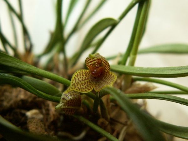 Niektórym cudownie pleurothallisy zamieniają się w masdevallie a mnie odwrotnie - roślina opisana jako Masdevallia herradurae zamieniła się w no własnie w co ? Może jakaś dryadella ? A może masdevallia ? Ktoś ma takie cudo ?