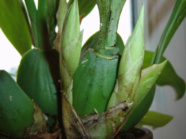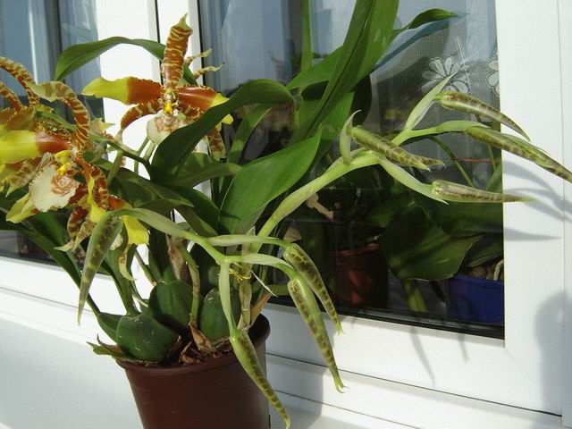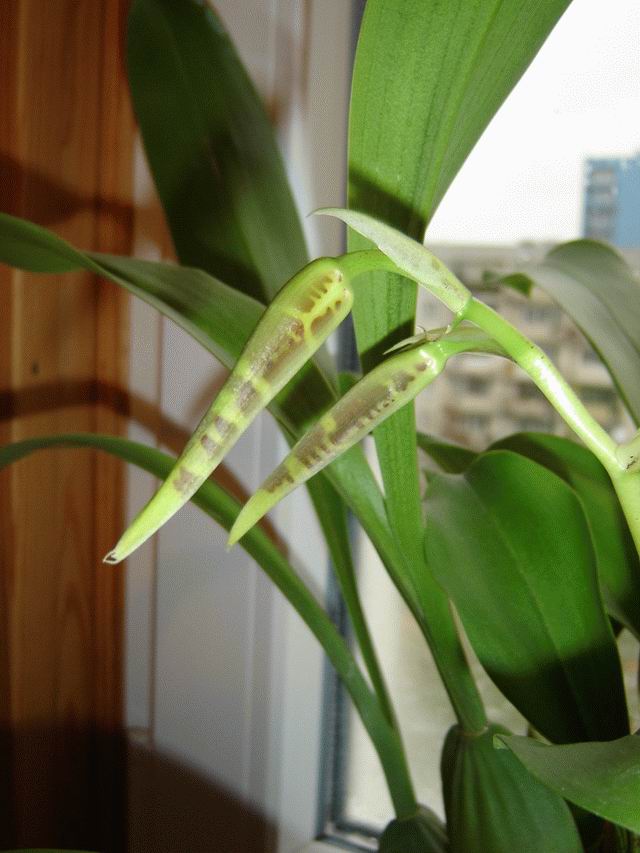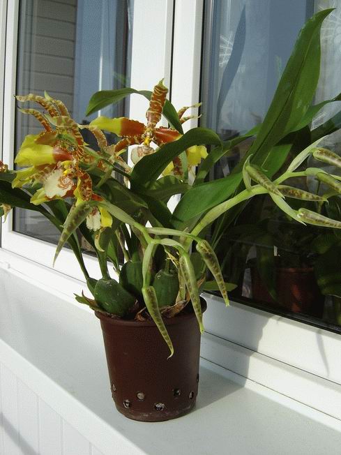 Roślinę uprawiam drugi sezon. W pierwszym roku pomimo intensywnego chłodzenia, nic - ani jednego korzonka, przyrostu nie mówiąc już o kwiatach. W tym roku w połowie maja storczyk został wystawiony na balkon, wystawa południowa, wrócił do mieszkania w końcu października. Efekt: 4 nowe przyrosty, 5 pędów kwiatowych, 22 kwiaty. Roślina uprawiana jest w substracie na bazie kory sosnowej, drenaż z keramzytu do wysokości 1/3 doniczki. Roślina na balkonie stała w dość dużym pojemniku wypełnionym keramzytem i wodą.