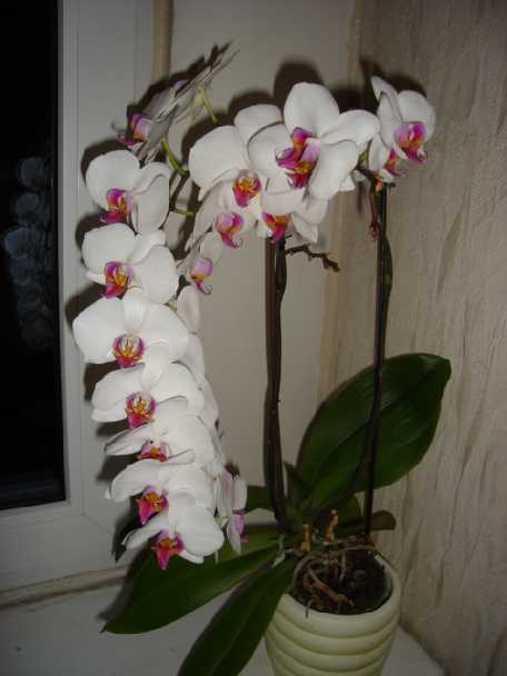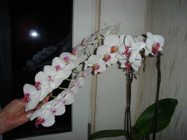 Przepięknie uporządkowany! Przypomina mi egzemplarze z www. dotyczących wystaw japońskich. Tamtejsi hodowcy lubują się w kwitnących w ten sposób falenopsisach .