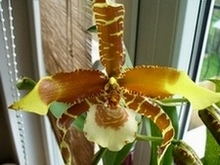 Właśnie zakwitło u mnie Rossioglossum Grande.Kupione u pana Manuela miało zakwitnąć w następnym sezonie,postanowiło jednak teraz.Miło było obserwować,jak szybko rósł pęd kwiatowy,bo ok.1cm na dobę.Jest trochę żarłoczne.A oto zdjęcia...