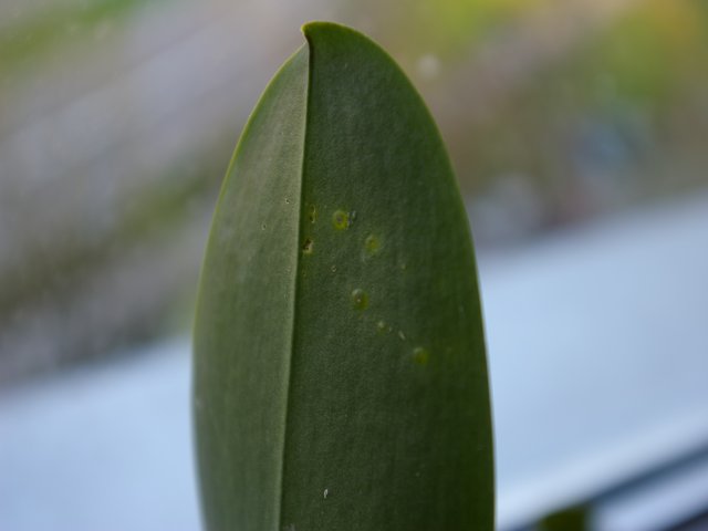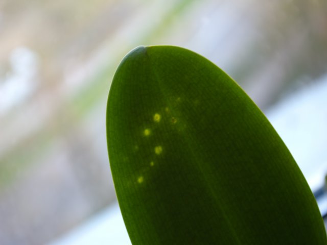 Szkoda, że wśród tylu znawców storczyków nie znalazł się nikt, kto z całą pewnością powie jaka jest przyczyna powstawania "kropek' na liściu i jak z tym postępować. Kiedyś na jakimś forum ten temat był juz poruszany i też nie było odpowiedzi, czyżby było to rzadkie zjawisko. Mam nadzieję, że nie jest to nic groźnego.