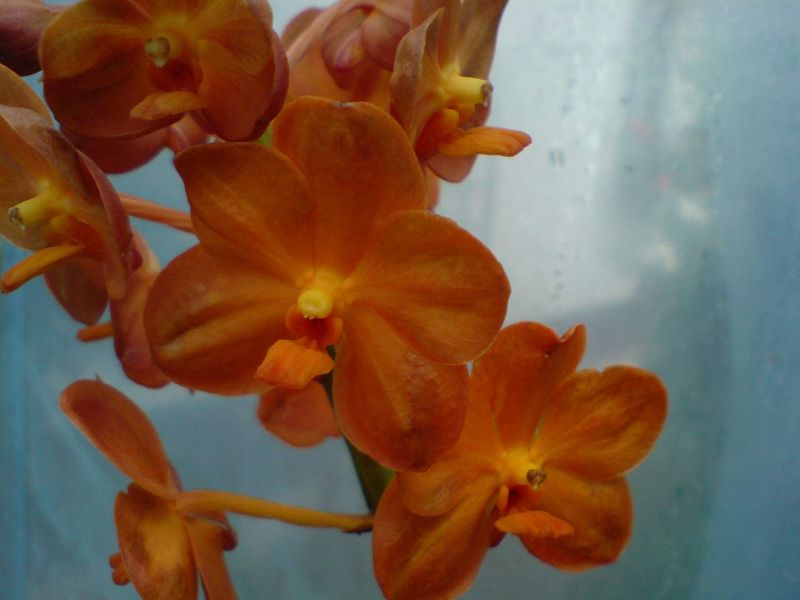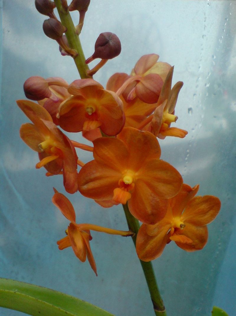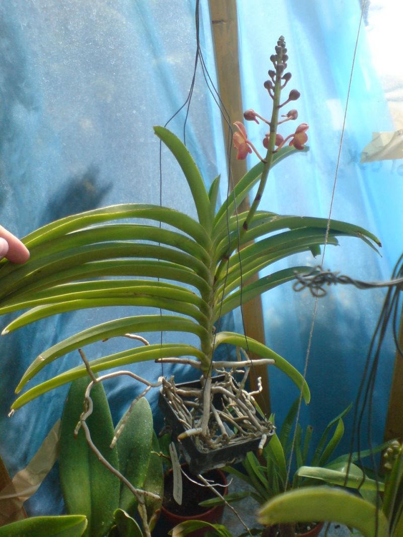 Zakwitła mi najprawdopodobniej ascocenda zakupiona z nazwa suksamran beauty. Jak sie okazało kwiat nie przypomnia podanej nazwy. Niestety nie udalo mi sie znalesckwiatu podobnego do mojej. Moze ktos z forumowiczów posiada ja w swojej kolkcjii i zna pelna nazwe? Na pedzie jest jeszcze wiele pakow, a kolejy wyrat z pomiedzy lisci Trzymana od maja w tunelu, ped rosl wolno... Kwiaty nie sa zbyt duze wielkosc: wys. 4,5 cm x 4.