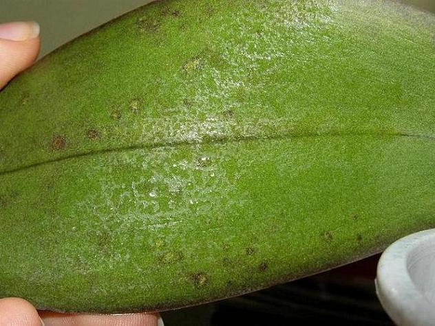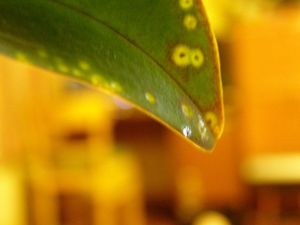 Co ten storczyk przeżył to tylko ja wiem No ale po długiej walce o jego życie w koncu się udało, nawet zaczął mi się odwdzięczać (chyba) za walke o jego żywot i w nagrodę wypuscił nie jeden a dwa pędy. Ale nie może być za pięknie..już jakiś czas temu zaywazyłam że od spodu liścia pojawia się "rosa" i byłam spokojna bo do tej pory myślałam że to przejaw gutacji. Ale teraz sie troszeczkę martwie, bo na wierzchu liścia wyskoczyły "pypki" ktore czuć pod palcem. Boję się żeby to nie był grzyb, bo wykluczam raczej insekty (oglądałam pod lupą)Dołączam zdjecia i z góry przepraszam za jakość. Miałby być ładniejsze