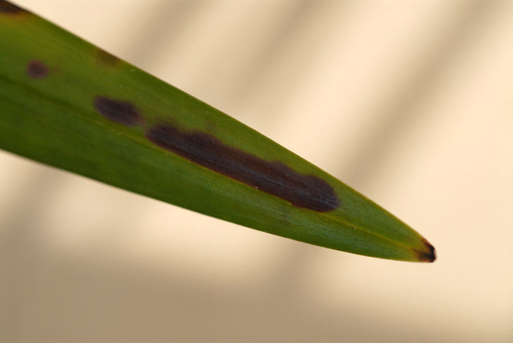 Takie ciemne plamy na liściu to sygnał, że roślina została przechłodzona np. po podlaniu. U mnie niedawno na niekwitnącym falenopsisie zauważyłam jedną taką plamę. Zminimalizowałam podlewanie, bo storczyk stoi przy oknie, które obecnie w okresie mrozów tylko sporadycznie uchylam. Czy to cymbidium ma plamy również na innych liściach? Chory liść i gnijące korzenie trzeba obciąć i zdezynfekować np. węglem drzewnym. Resztę sugestii pozostawiam innym bardziej doświadczonym storczykowcom.