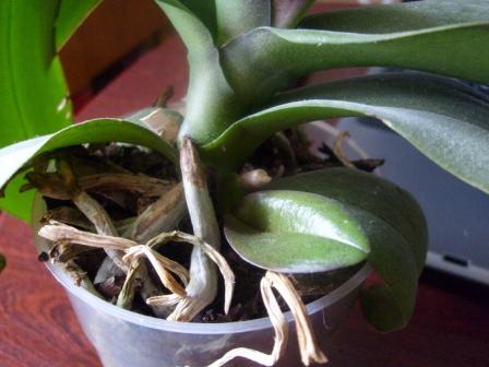 to prawdopodobnie rośnie tzw. "basal keiki". Na ogół są one wrośnięte w roślinę macierzystą i rozdzielenie to często jak rozdzielenie bliźniąt syjamskich, bardzo ryzykowne i często kończące się niepowodzeniem . Radzę spokojnie czekać, może przecież być w jednej doniczce taka podwójna roślina.