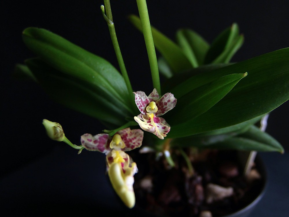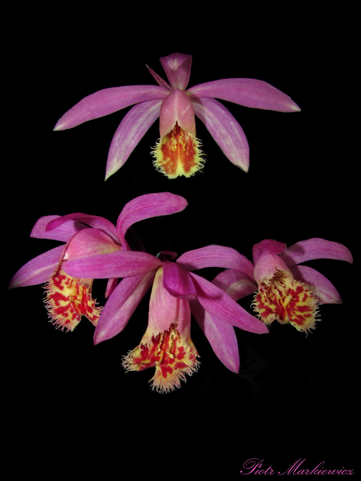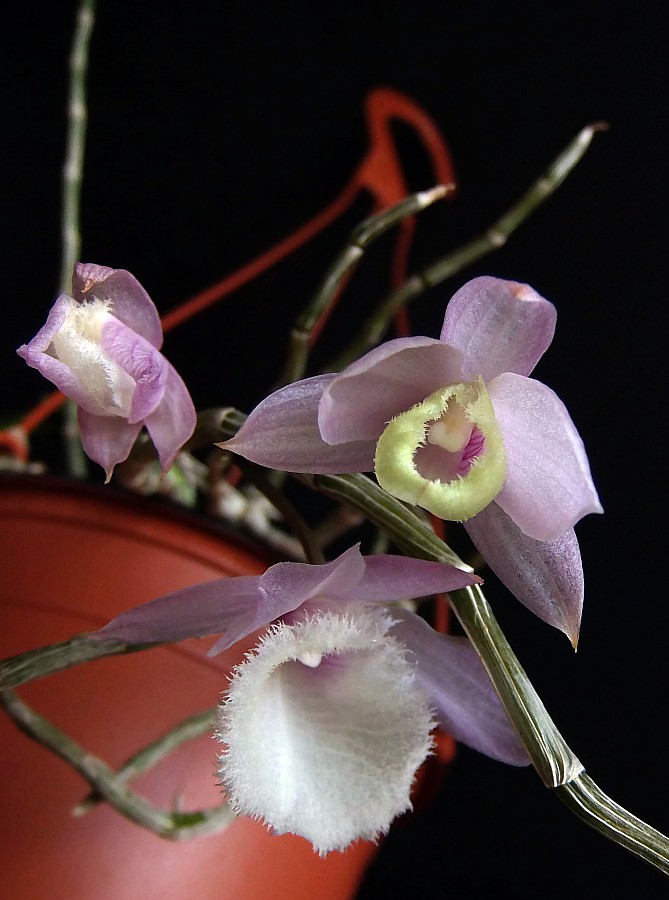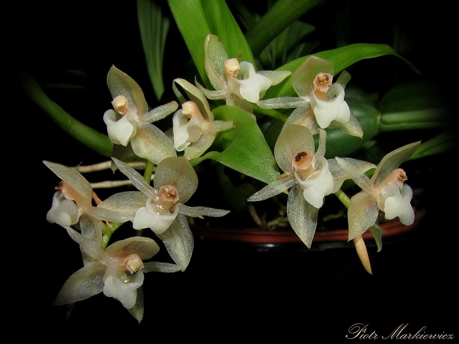 Piotrze, jeżeli chodzi o Twoją śliczną nieoznaczoną Pleione, to Rakata była moim pierwszym skojarzeniem, ponieważ kwiatów Pln. Vesuvius nie widziałam. Możliwe, że to Vesuvius. Jednak dokładna identyfikacja dla laików będzie baaaardzo trudna, ponieważ obie krzyżówki są 'spokrewnione' przez Pln. x confusa: Pleione Vesuvius to Pln. bulbocodioides x Pln. x confusa, zaś Pleione Rakata - Pln. pleionoides x Pln. Shantung = Pln. formosana x Pln. x confusa.... Do zauważenia niuansów różniących kwiaty na pewno potrzebna jest opinia specjalisty.