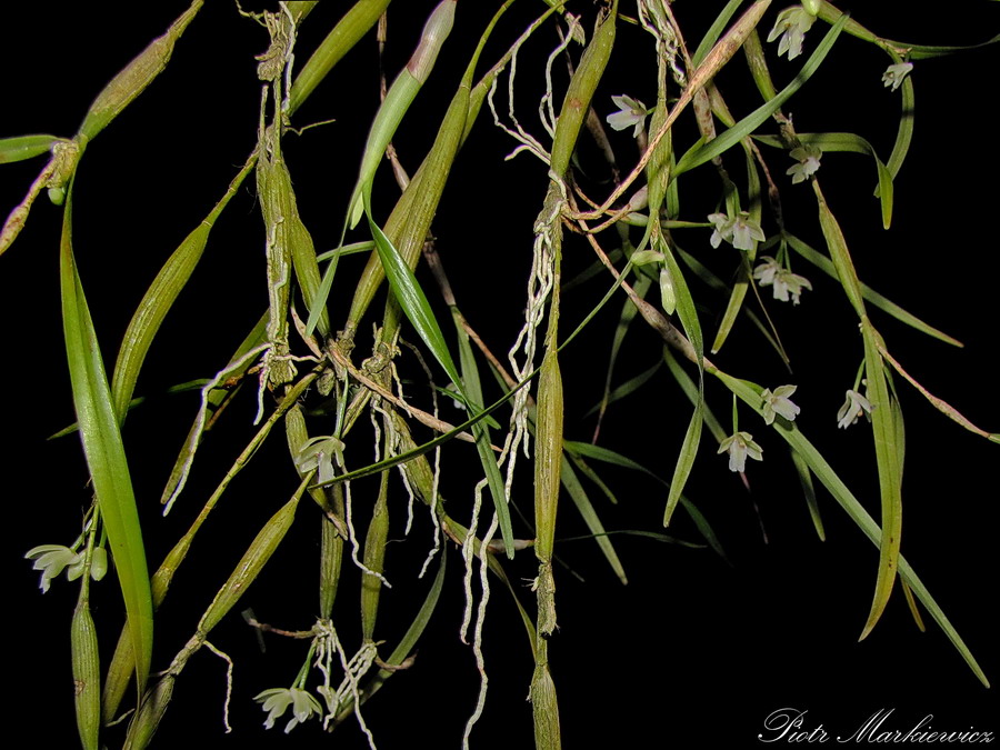 Regularne podlewanie zaczynam dopiero wtedy, gdy rośliny wykształcą korzenie, co można poznać po intensywnym wzroście liści. Do tego czasu tylko delikatnie zwilżam podłoże dookoła pseudobulw i zanurzam w wodzie na kilka minut doniczki tak max do połowy ich wysokości.