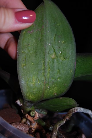 "Spuchnięty" jest listek od wody, czyli wszystko z nim ok. Powinien być właśnie taki i dość sztywny w dotyku. Ten cieńszy liść to może młodszy, sprawdziłam na swoich Phalaenopsis i też tak mają. Względnie gdy rósł storczyk był niedożywiony? To nieistotne, ważne, by liście były bez jakichś oznak choroby, tu tego nie widzę.