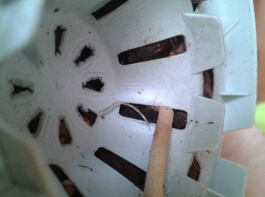 W moim domu i na balkonie pojawiły się bardzo denerwujące ziemiórki. Zaatakowały mojego Fikusa, którego zaraz przesadziłam. Ale na balkonie w skrzynce z Psianką jasminową również je zauważyłam. Wszystko byłoby w porządku gdyby nie to że najwyraźniej jakimś cudem zaczęły się uczepiać moich Falenopsisów :/ Psiankę i kilka Falków, na których siedziały muszki zalałam preparatem Polysect 500 SL, który u koleżanki zadziałał. Ale obawiam się, że niestety zaraz zacznę znajdować kolejne muszki na kolejnych Falkach, tymbardziej że stoją wszystkie razem na oknie... Kilka tygodni temu przeszłam batalię z roztoczami i po tym wszystkim Falki są osłabione, więc kolejna wizja batalii doprowadza mnie do szału. A dzisiaj na mojej nowej Cambrii , która stoi od początku w zupełnie innym miejscu niz Falki zauważyłam na spodzie doniczki jakaś dziwną larwę czy coś w ten deseń.. Załączam zdjęcie. Myślicie, że to larwa ziemiórki ? Była ona dość długa i poruszała się na nitkach zrobionych przez siebie. Może ktoś z Was spotkał się już z takim gadem?