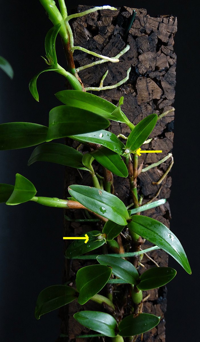 36. Hormidium pygmaeum (Prosthechea pygmea) - na pierwszym zdjęciu prawie cała roślina ze strzałkami wskazującymi malutkie kwiaty, bo można przeoczyć , a na drugim pojedynczy kwiat