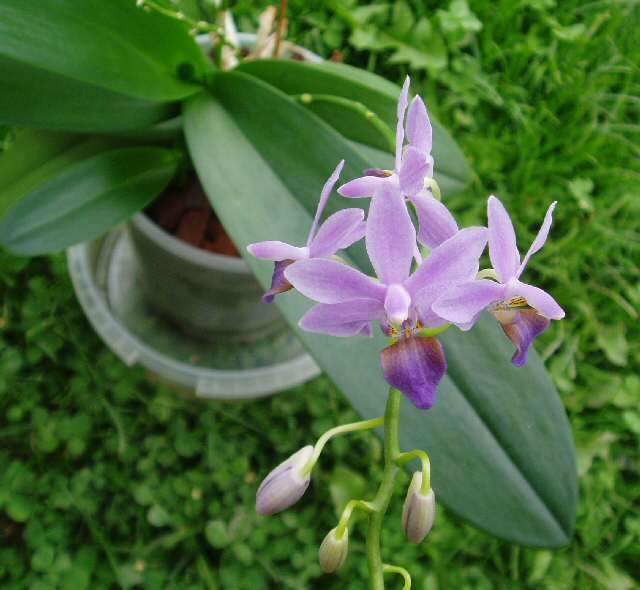 Z "obliczeń" wynika, że będzie to Doritaenopsis. Na stronie poniżej jest opisany (pod falkami). Roślinka w przeciwieństwie do falków tworzy nowe przyrosty i ma mniejsze liscie.