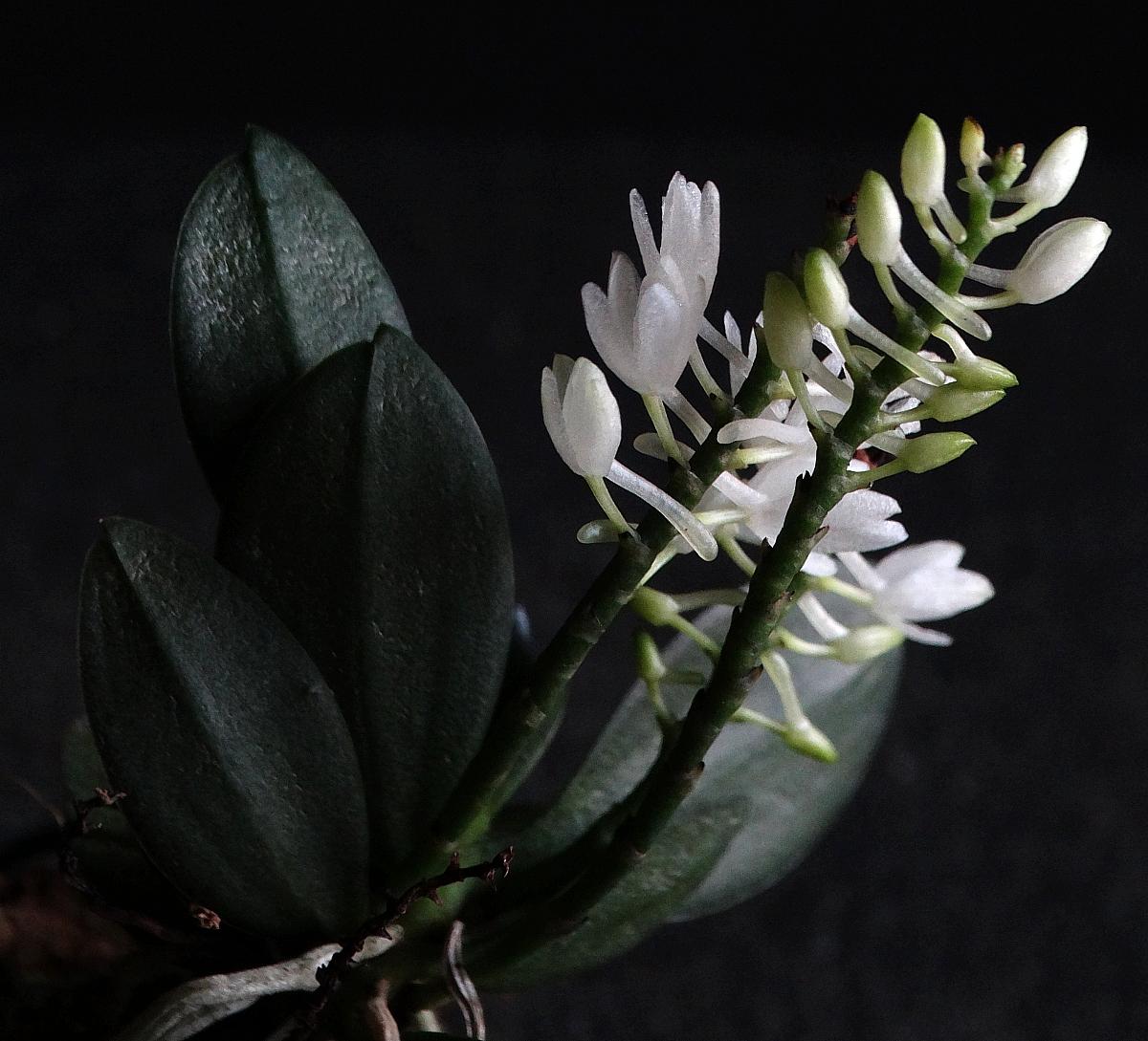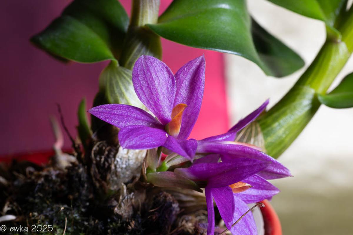 3. Dendrobium Berry Oda, hybryda bardzo delikatnie pachnie, obficie kwitnie na keikach szczytowych starych bulw.
