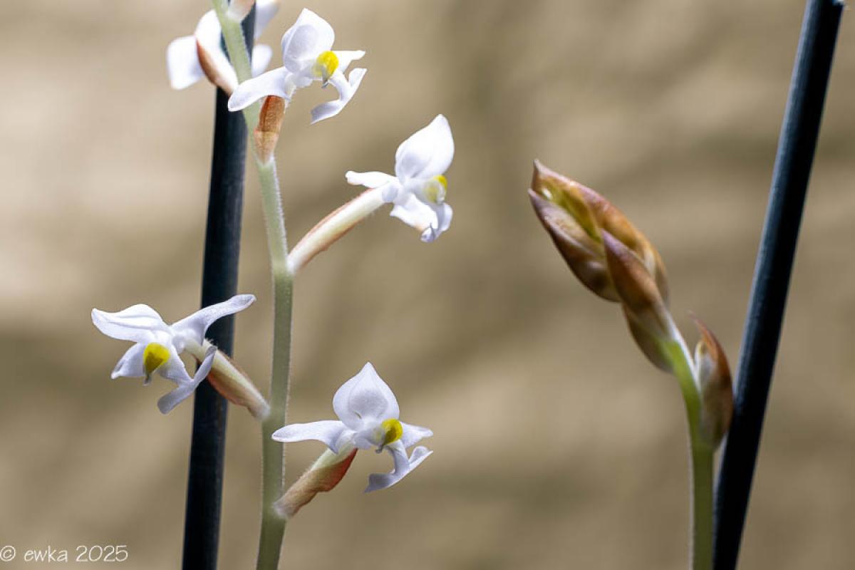 Trochę kwitło i trochę przekwitło. Mam problem z robieniem zdjęć dużych roślin. Obcinałam kwiaty i tak robiłam zdjęcia. Małe rośliny w orchidarium porasta paproć i mech. Paprotkę ręcznie wyrywam ale na mech poszukam oprysku.