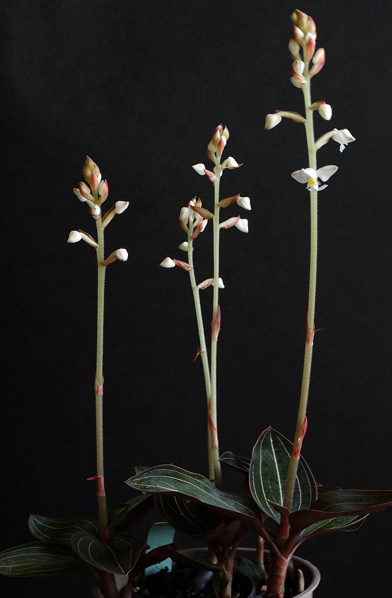 6. Ludisia discolor, ta roślina ma fazy kiedy źle wygląda, zanikają stare pędy a nowe dopiero się tworzą. Pachnie.