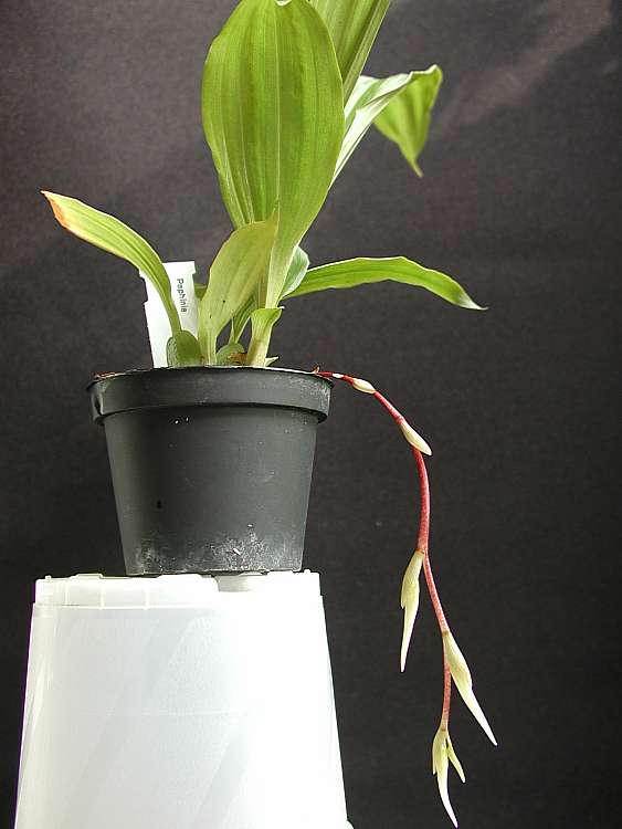 Niestety, moja Paphinia herrerae zakończyła żywot ziemski, chyba z powodu nadopiekuńczości , ale że podoba mi się ta roślina baaaaaaaardzo, to zamówiłam u Manuela następną i dostałam z pąkami, a idzie kolejny pęd kwiatowy