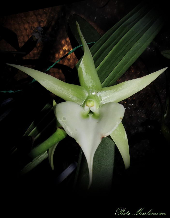 Nooo, to przynajmniej wygląda jak kwiat. Jerzy powinien Ci jeszcze ćmę do tego dołożyć ( bo pewnie w przyrodzie nie występuje). Ten poprzedni Oe.. coś tam, to się nie umywa do tego Angraecum ( że Ci nie szkoda miejsca na takie "coś"). Jak tak patrzę to utwierdzam się w przekonaniu, że trzeba będzie spróbować z tymi madagaskarskimi pięknościami. Gratulacje !
