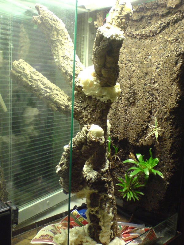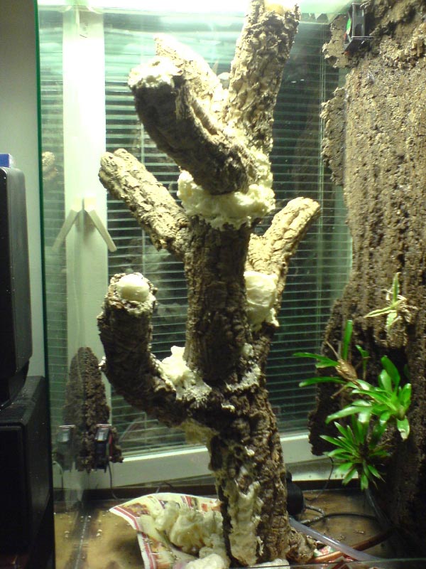 Ja jestem wielką zwolenniczką pianki, zrobiłam sobie z niej ścianki do żabarium, wygląda bardzo naturalnie i jest zdecydowanie prostsza w formowaniu niż płyty korkowe w których trzeba dłubać. No i jeszcze z doświadczenia mego uwaga, że jeśli chcecie wpuścić do zbiornika jakieś zwierzaki to niestety nie można jej podmalowywać farbą w sprayu, roślinom raczej nie zaszkodzi.