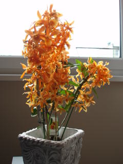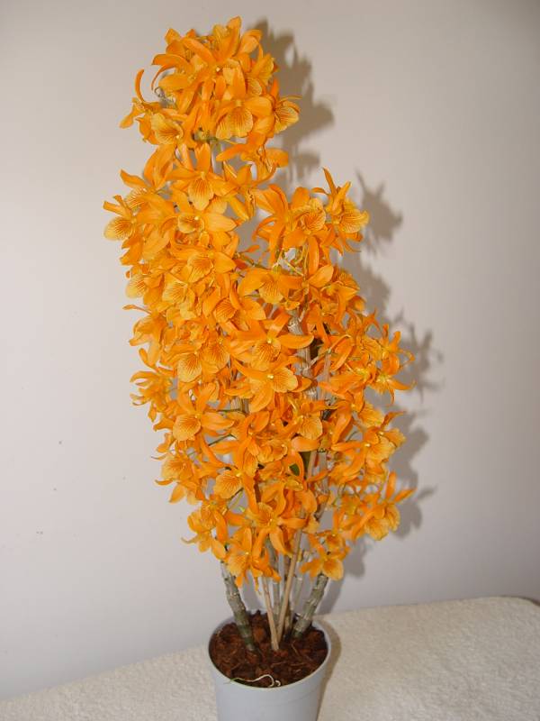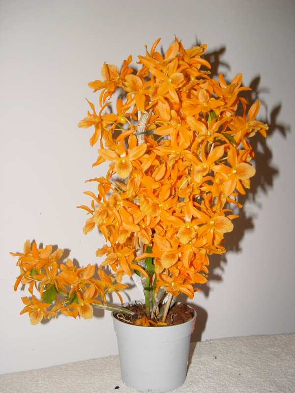 Wspaniale dendrobia - takie biale mam, na razie wielkosci +/- takiej, jak u Pani w 2004, ale mam nadzieje, ze sie rozrosnie. Kwitlo juz w grudniu, teraz zaczyna kwitnac ponownie. Natomiast to pomaranczowe kompletnie mnie zaskoczylo - kwiaty jak u D. unicum, ale pokroj inny... super roslinka. No coz... wprawdzie chetnych na sadzonki z niego jest juz bardzo duzo, ale, jesli mozna, tez bym sie do nich przylaczyl... W zamian - latem moge miec sadzonki takiego samego dendrobium, jak na zdjeciach p. Iwony z 9 marca. Wlasnie w niedziele kupilem taka rosline
